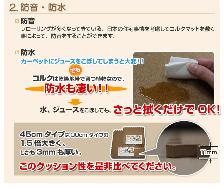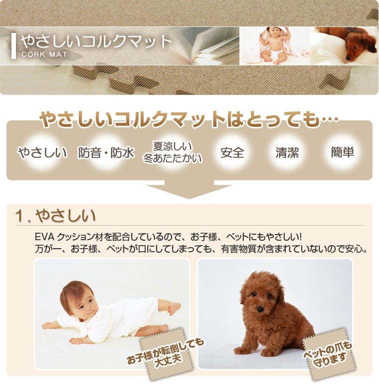 快適で安心・安全、しかもお手頃価格!「やさしいコルクマット」をぜひお求めください!!