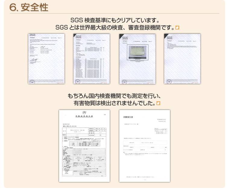 「やさしいコルクマット」は素材にも拘りが。使用素材は、国際的な検査機関SGSの認証だけでなく、国内の検査機関の検査結果からも、その安全性が証明されているので、小さなお子様がいるご家庭でも安心して使えますね。