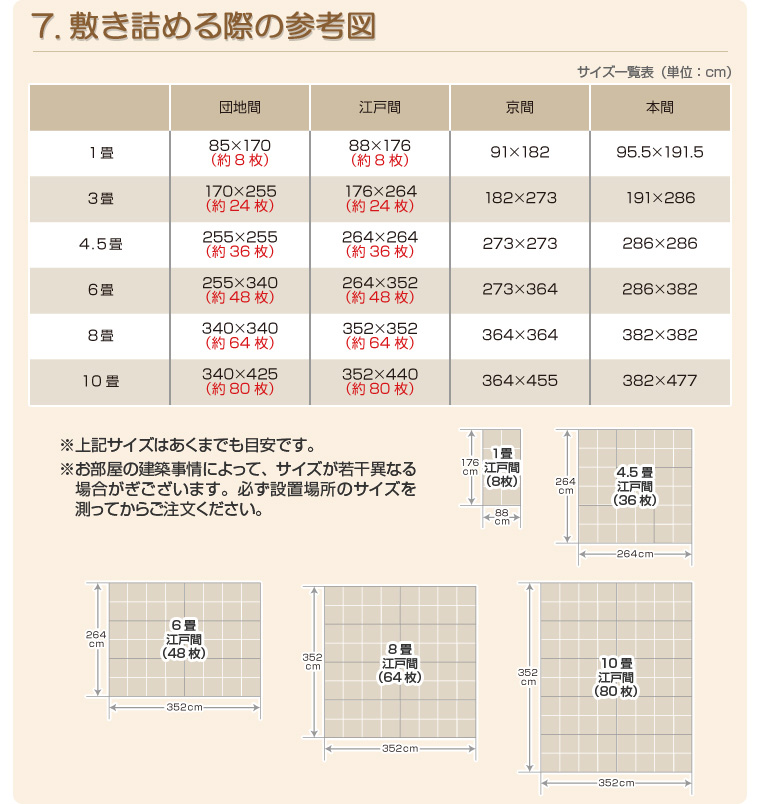 ●畳サイズは建築状況等によりバラツキがあります。必ず実際のサイズをご確認の上お求め下さい。